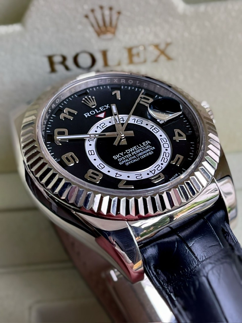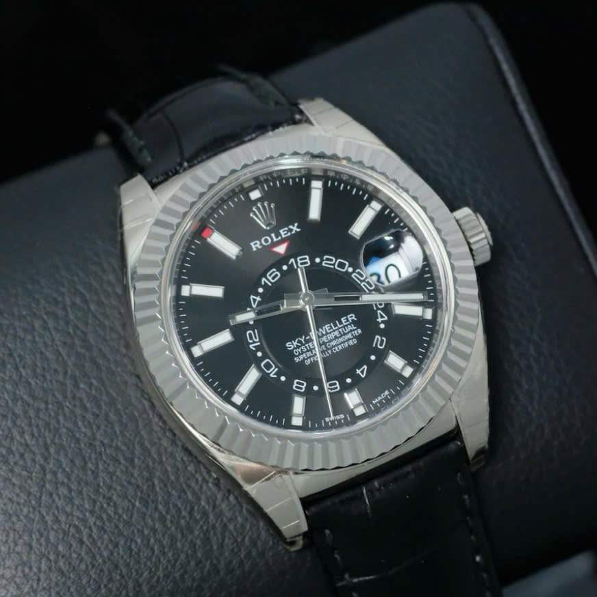 Với mặt số đen sang trọng, dây da cao cấp và các biến thể Sky-Dweller biểu tượng, đồng hồ này thực sự nổi bật.
