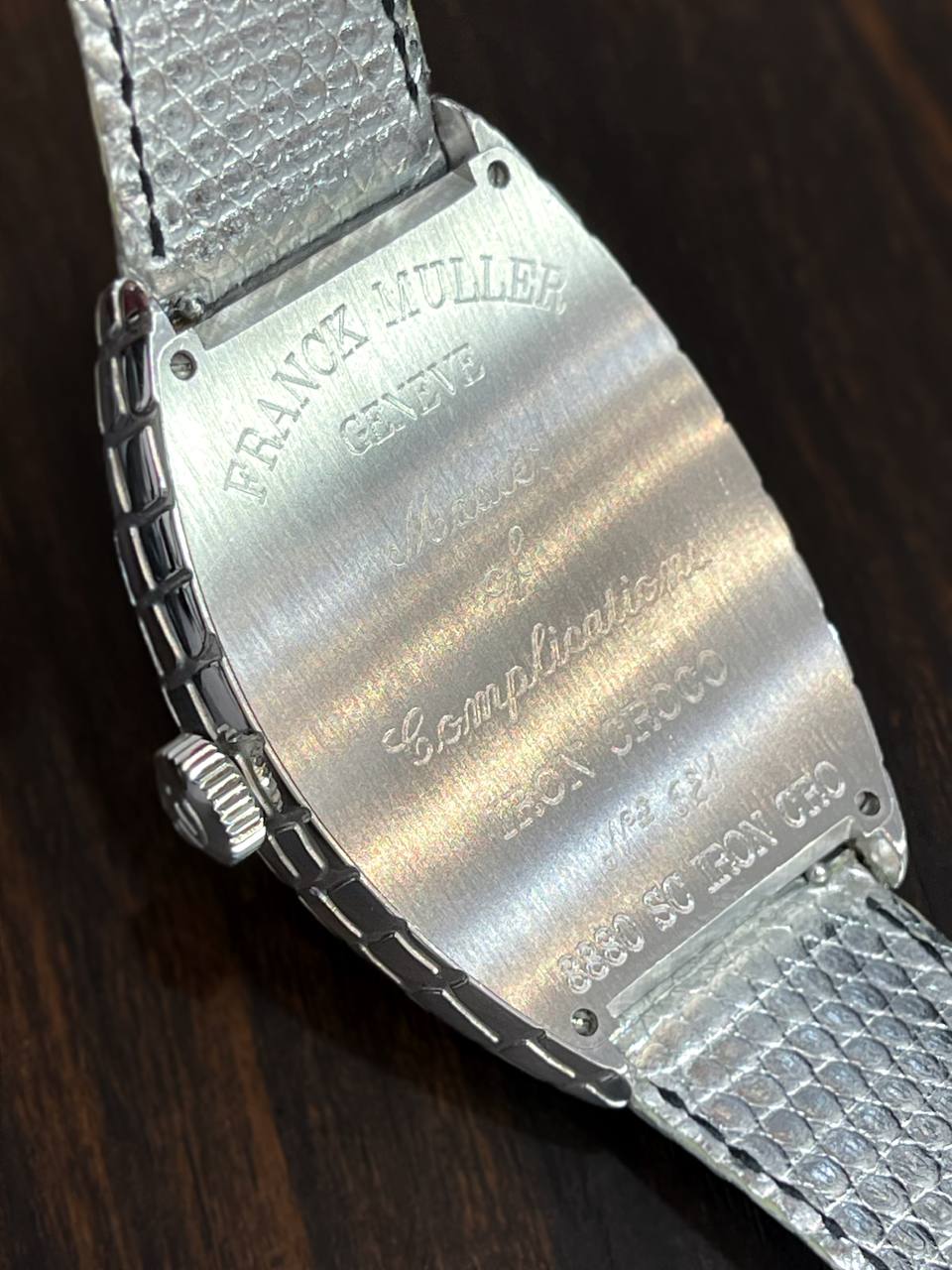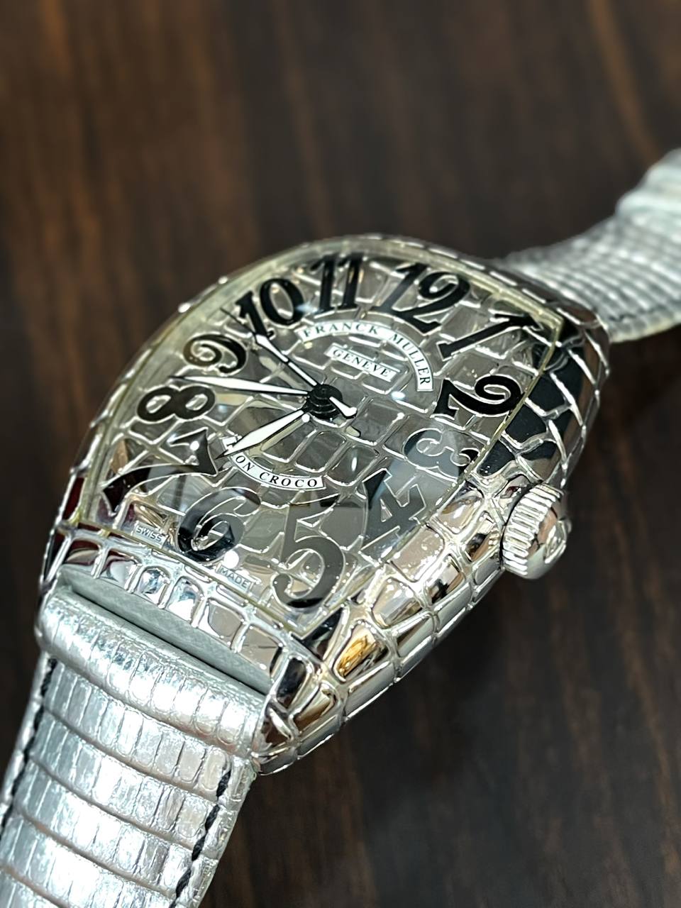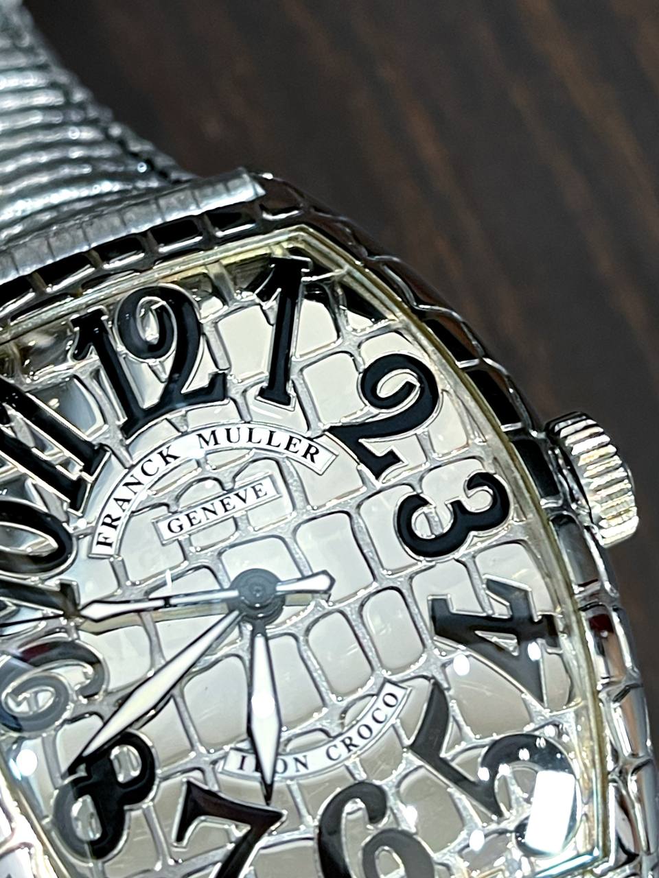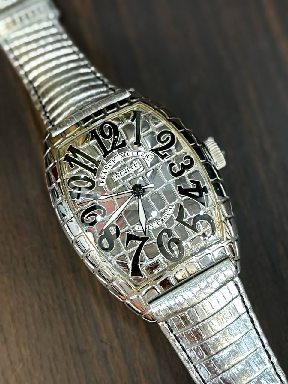 Họa tiết Iron Croco phay khắc trên vỏ và mặt số gợi cảm giác da cá sấu sống động - một sáng tạo độc đáo của Franck Muller.