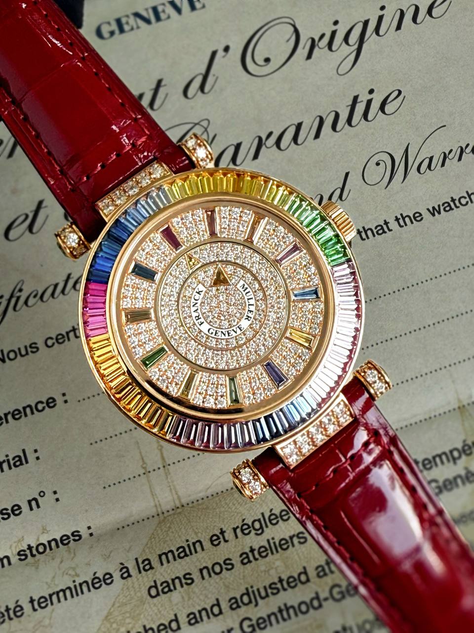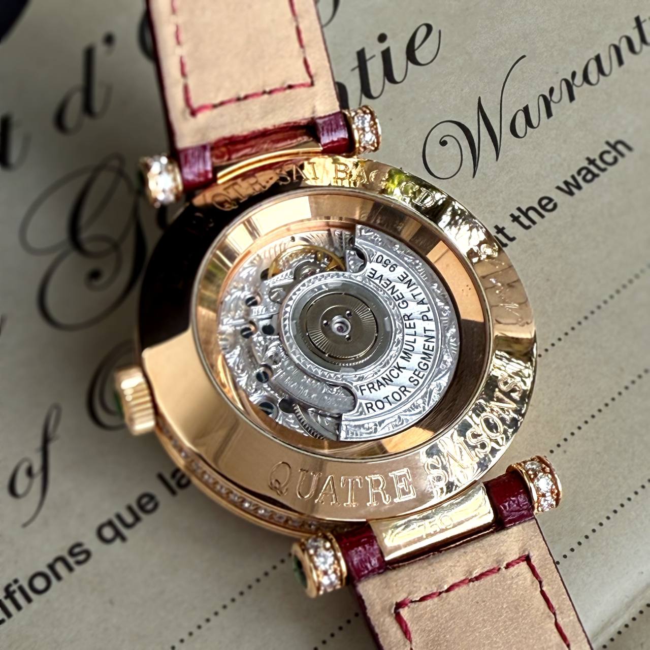 Thêm một điều thú vị là cỗ máy FM 2800-MY được thiết kế đặc biệt cho dòng Quatre Saison với các đĩa saphire trong suốt cho phép ánh sáng xuyên qua làm nổi bật bộ đá gem-set baguette trên vành bezel.
