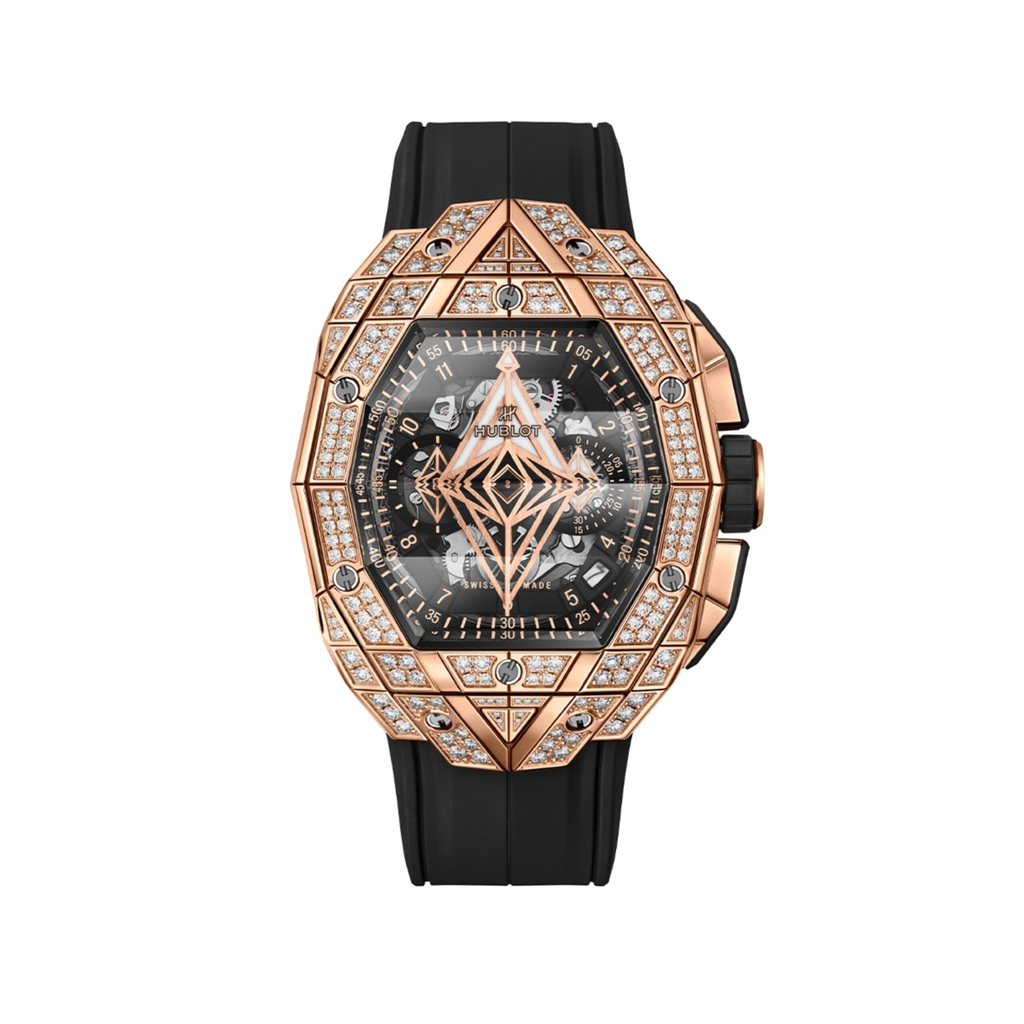 Điểm nổi bật của Hublot Spirit Of Big Bang 42mm 648.OX.0108.RX.1604.MXM23 chính là chất liệu King Gold – một loại vàng độc quyền của Hublot, kết hợp giữa vàng truyền thống và đồng, tạo ra một sắc thái ấm áp và sang trọng. Bên cạnh đó, phần vỏ đồng hồ còn được trang trí bằng những viên kim cương lấp lánh, tạo nên hiệu ứng ánh sáng tuyệt đẹp mỗi khi người đeo di chuyển.