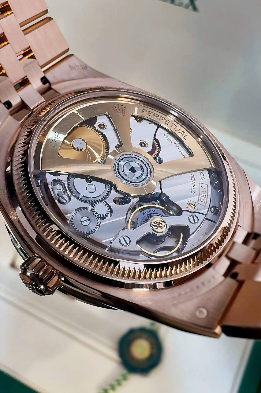 Calibre 7135 (5Hz): Đây là bộ máy "Hi-Beat" hiếm hoi của Rolex với tần số 36.000 nhịp/giờ. Điều này giúp kim giây trôi mượt như một dải lụa, gần như không có độ giật.