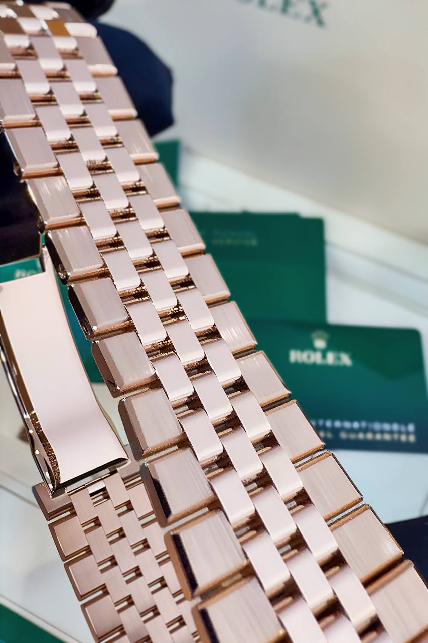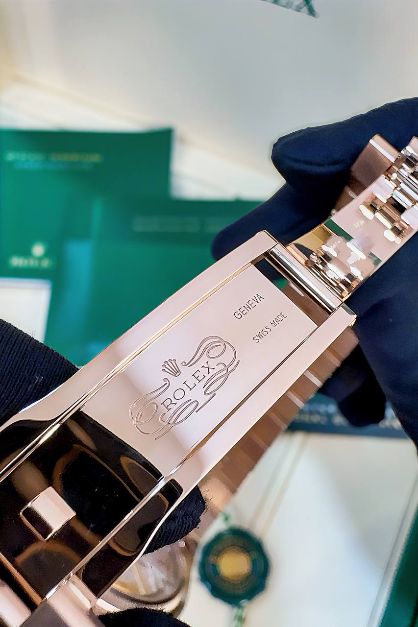 Chất liệu Everose Gold 18ct: Loại vàng hồng độc quyền của Rolex với một lượng nhỏ bạch kim pha trộn, giúp màu sắc không bị phai nhạt theo thời gian hay dưới tác động của nước muối, clo.